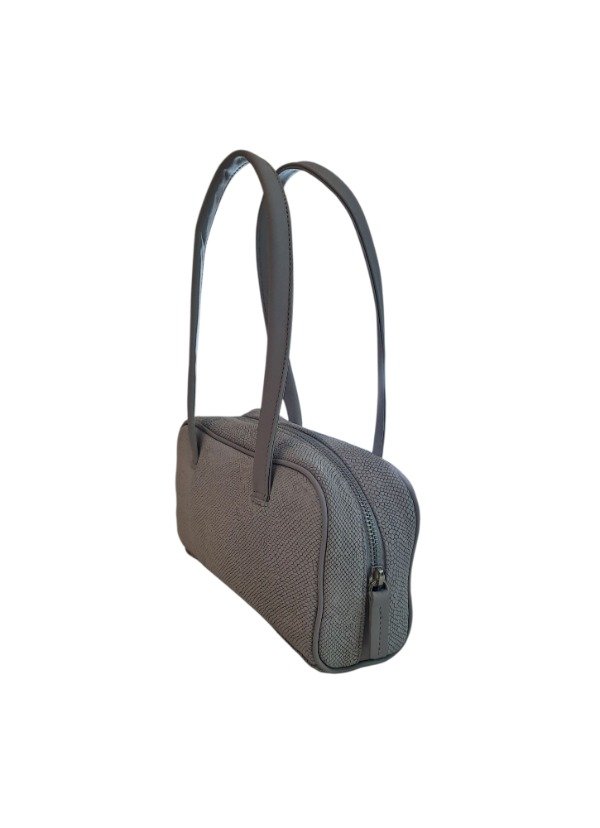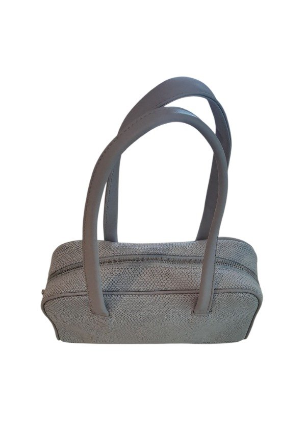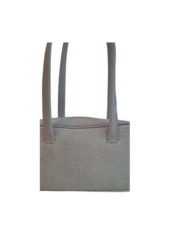 Cartera de cuero vacuno con tramado reptiliano. Color gris ártico.